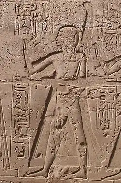 - dans le temple de Séthi Ier à Abydos, le prince à deux reprises est représenté dans un corridor menant du « Couloir des Rois » (où se trouve la liste d'Abydos) vers l'extérieur : l'une des représentations montre le prince capturer un taureau sauvage, la seconde montre le prince présenter aux dieux des oiseaux des marais[11] ;