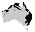 Les principales masses continentales constituées par l'île Australie et la Nouvelle-Guinée sont restées, sauf exception, séparées par des mers, rendant la migration des espèces impossible. Cependant, au cours de certaines périodes glaciaires, comme il y a 10 000 ans, la circulation de la faune a été possible entre ces masses. Ceci fut aussi possible avec l'Eurasie, par exemple durant la glaciation de Würm. Ainsi, il est probable que Litoria caerulea ait migré d'Australie en Nouvelle-Guinée du fait de sa large distribution géographique en Australie et très sectorisée en Nouvelle-Guinée. Même chose pour les espèces du genre Nyctimystes et pour les familles des Microhylidae et des Ranidae, qui, très présentes dans l'hémisphère nord, n'occupent que l'extrême nord australien. Deux espèces sur cinquante neuf pour des Microhylidae, et seulement une sur sept cent cinquante des Ranidae sont considérées comme indigènes en Australie. Lorsqu'elles ont pu s'établir, la plupart des niches écologiques étaient occupées par des amphibiens locaux.