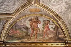 Lors d'une éruption du volcan, un incendie dévore Catane. Tandis que les habitants tentent de sauver leurs biens, deux frères cherchent à sauver leurs parents : l'un porte sur ses épaules son père, l'autre sa mère, et ils s'enfuient. Les Dieux, émus par cette piété filiale, font en sorte que les flammes ne les touchent pas, leur laissant le passage libre [1].
