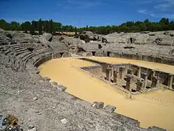 Les jeux du cirque et les pièces de théâtre sont financés par l'aristocratie locale (magistrats). Des naumachies sont possibles dans cet amphithéâtre. Il possède des machineries pour les spectacles, dont une partie est située au centre dans l'espace souterrain, qui était recouvert de planches de bois.