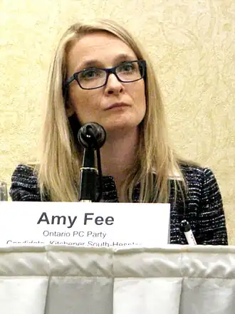 - ↑ (en) « PC Amy Fee wins in new riding of Kitchener South-Hespeler », CBC News, (lire en ligne)