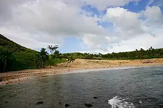 Située au nord de l'île, cette vaste plage de sable blanc s'est formée sur une baie atypique pour l’île dont l’essentiel de la côte est rocheuse et formée de roches noires volcaniques.