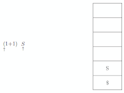 Où '$' est un symbole de fond de pile et de la fin du tampon d'entrée, et 'S' l'axiome de la grammaire.