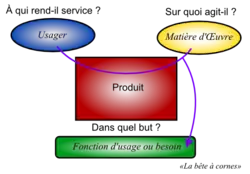 - le graphe des prestations (aussi appelé "bête à cornes" ou d'expression du besoin), qui permet d’exprimer la recherche du besoin.