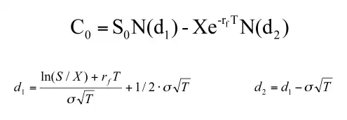 - Le sous-jacent suit un mouvement brownien géométrique (processus stochastique) avec une volatilité, constante;