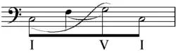 La forme canonique de l’arpégiation de la basse est I–V–I. Le deuxième intervalle, V–I, forme en dessous de ^2–^1 la cadence parfaite qui termine l’œuvre et n’est pas susceptible d’élaboration au niveau de l’arrière-plan. Le premier intervalle, I–V, par contre, est généralement élaboré. Les cas principaux sont ceux-ci :