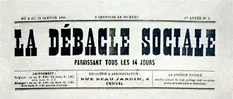 Le premier numéro de La Débâcle sociale sort le à Ensival (Wallonie). À l'origine publié toutes les deux semaines, à partir du numéro 6 (22-), il devient hebdomadaire. Parmi les contributeurs : Henri Zisly, Henri Beylie, Émile Gravelle, Jules Moineau, Augustin Hamon, Élisée Reclus, Séverine et Ferdinand Monier. Après 10 numéros, le journal s'arrête le [10].