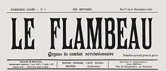 Le à Bruxelles, sortie du premier numéro du journal Le Flambeau, « Organe de combat révolutionnaire ». Le responsable en est Julius Mestag[12]. « Le Flambeau n'est pas un journal de théorie, ni une feuille à potins, c'est un organe de combat révolutionnaire, le cri des opprimés, l'expression d'un sentiment de révolte. »[13]