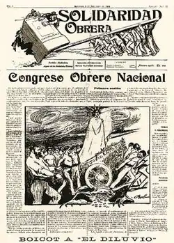 L'organisation syndicale Solidaridad Obrera est fondée en octobre 1907 à Barcelone. Elle est le résultat d’une fédération de plusieurs sociétés ouvrières qui se donnent alors pour objectif de réorganiser les syndicats catalans très affaiblis après l’échec de la grève générale de 1902. En septembre 1908, elle tient à Barcelone son premier congrès auquel participent environ 142 délégués. Durant ce congrès, Solidaridad Obrera devient une organisation régionale. En 1909, elle compte 12 500 syndiqués en Catalogne.
