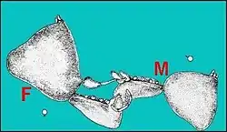 Ces palpes sont ensuite introduits dans l'épigyne des femelles (copulation et éjaculation). Le transfert du sperme fait intervenir un jeu subtil de pressions et dépressions engendrées dans le tube séminifère par les déplacements de sa sécrétion épithéliale et de sa cuticule complexe[45],[46],[47],[48],[49].
