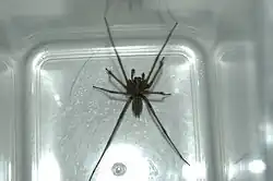 À noter que l'Araignée pyrénéenne, Telema tenella[51],[52],[53] et les autres Telemidae [54]élaborent des spermatophores pour conditionner leurs gamètes mâles. Chez d'autres Araneae, il n'existe que des coenospermies.