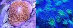 Chez certaines espèces de coraux, l'exosquelette peut être poreux et des canaux gastro-vasculaires peuvent le traverser pour relier les cavités gastro-vasculaires plusieurs polypes[10]; on parle alors de corail perforé. Dans le cas inverse, on parle de corail non-perforé.