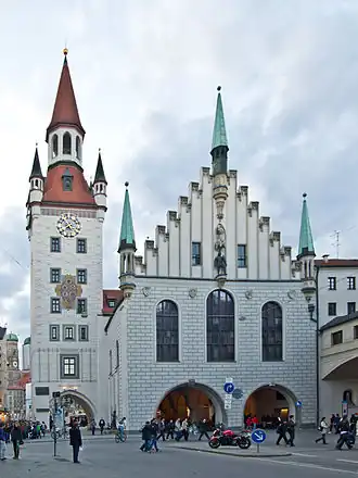 - (en) Cet article est partiellement ou en totalité issu de l’article de Wikipédia en anglais intitulé « Old Town Hall, Munich » (voir la liste des auteurs).