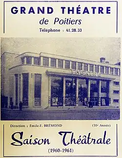- ↑ Publicité dans le programme d'inauguration, 1954, et archives municipales de Poitiers