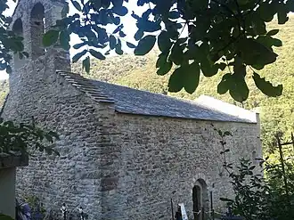 L'édifice est constitué d'une nef unique, voûtée en berceau brisé, fermée à l'est par une abside semi-circulaire voûtée en cul-de-four. Le portail d'entrée s'ouvre sur le mur méridional de la nef[5]. Au nord de la nef, une chapelle latérale a été postérieurement édifiée, peut-être au XVe siècle[réf. souhaitée]. Un clocher-mur à deux ouvertures s'élève sur le mur ouest : partiellement effondré, il a été restauré en 2010.