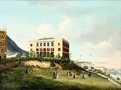 L'édifice est construit sur un promontoire de la Government Hill en surplomb de la baie, ce qui offrait un vaste panorama sur la mer, cachée aujourd'hui par les gratte-ciels. Il y avait d'abord en 1842 une demeure construite sous le nom de Johnston House pour le premier gouverneur de Hong Kong, Sir Henry Pottinger. Ce dernier y habite de 1843 à 1846. Son successeur John Francis David n'y habite que peu de temps avant de déménager sur la Caine Road[2]. La maison change plusieurs fois de propriétaires (dont la firme Augustine Heard and Company qui fait faillite en 1876[3]) et elle est transformée dans les années 1870 et 1880 pour en faire un édifice de trois étages supérieurs. La maison sert quelque temps de consulat de Russie. Les missionnaires français des Missions étrangères de Paris l'achètent en 1915 pour en faire leur procure. L'ensemble est reconstruit par le bureau d'architectes Leigh & Orange[4] et agrandi en 1917[5],[3]. La maison est construite en granit et en briques rouges dans le style néo-classique[1] de l'époque édouardienne[6], avec des frontons à la grecque et une tour à belvédère.