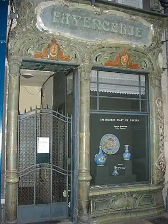 Une ancienne faïencerie de Nevers, aujourd'hui boulangerie. Il est à remarquer le mot "fayencerie", écrit avec un Y au lieu du ï.<