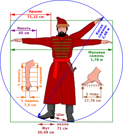 | Archine | аршин | coudée | 1⁄3 sagène | 28 | = 71,12 cm |