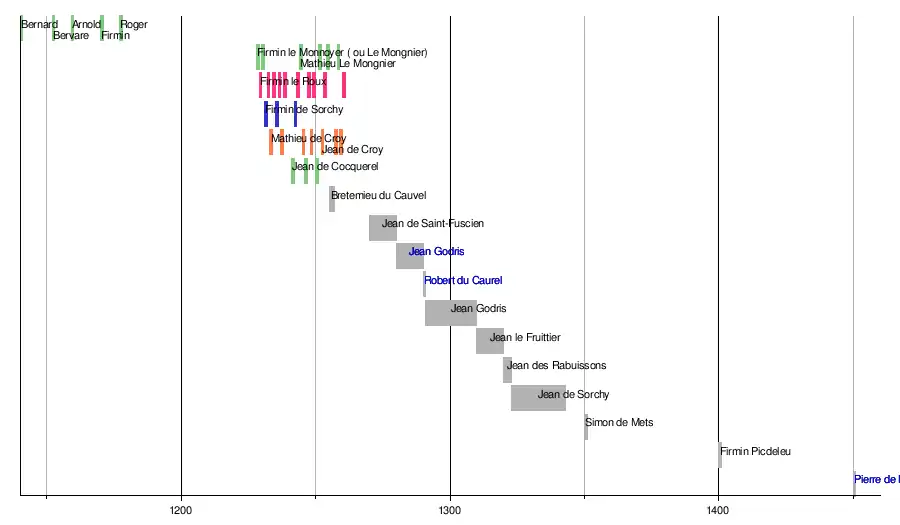 - 1316 : Jacques de Saint-Fuscien, décédé en cours de mandat, remplacé par Jean Le Borgne