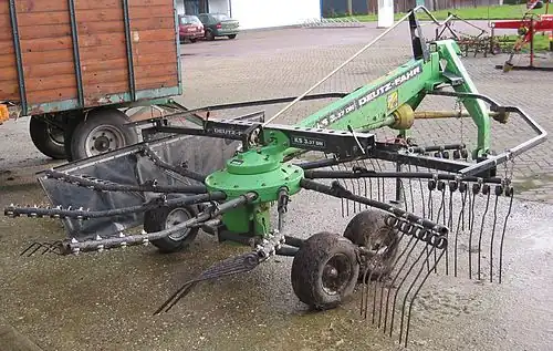 Les râteaux-andaineurs rassemblent le fourrage ou la paille en ligne continue ou andain. Les andains peuvent ensuite être ramassés par une presse à fourrage, une ensileuse, etc.