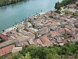 D'est en ouest, sa « largeur » est plus modeste. Son territoire comprend l'étroite plaine fertile de la rive droite et monte jusqu'au bord supérieur du plateau, en limite avec les communes de Saint-Désirat, Saint-Étienne-de-Valoux et Talencieux[1].