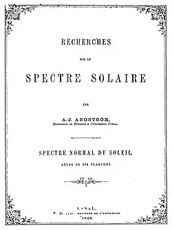 - ↑ Anders Jonas Angström, Recherches sur le spectre solaire : Spectre normal du soleil, Uppsala, Schultz, , 42 + XV pages de tableaux (lire en ligne), p. 31-32