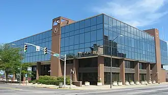- la High School Wigwam, qui comprend la High School Athletic and Education de 1961 et les extensions de 1979 (classes et auditorium)[34]. En grande partie consacrée au basket-ball, l'école est un exemple de l'« hystérie Hoosier (en) » pour ce sport dans les années 1950[34] avec le deuxième plus grand gymnase du secondaire des États-Unis[11].