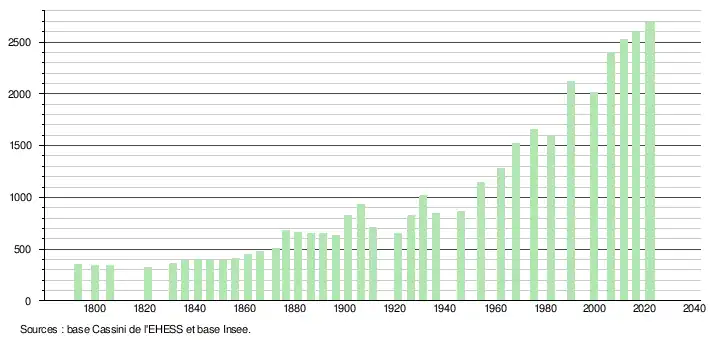 - ↑ Fiches Insee - Populations de référence de la commune pour les années 2006, 2007, 2008, 2009, 2010, 2011, 2012, 2013, 2014, 2015, 2016, 2017, 2018, 2019, 2020, 2021 et 2022.