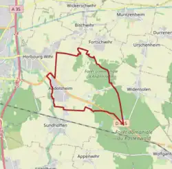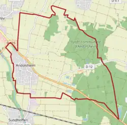 - ↑ « Orthodromie entre Andolsheim et Colmar », sur fr.distance.to (consulté le ).