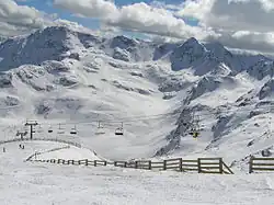 En raison de sa localisation dans le massif des Pyrénées orientales, l'Andorre est constituée principalement de montagnes élevées, avec une altitude moyenne d'environ 2 000 m[22] dont le point culminant est le pic de Coma Pedrosa, à 2 943 m. Le territoire est divisé en trois vallées étroites en forme de Y qui se regroupent en une seule suivant le courant principal, la rivière Valira, coulant vers la Catalogne (au point le plus bas de l'Andorre qui est à 870 m). Le pays des vallées d'Andorre entre la France et l'Espagne, sur le versant sud des Pyrénées, est constitué par deux vallées principales : celle du Valira d'Orient et celle du Valira del Nord dont les eaux réunies forment le Valira. En territoire espagnol, cette rivière se jette dans le Sègre, affluent de l'Èbre. Une ceinture de hauts sommets, tous d'une altitude supérieure à 2 500 m, isole l'Andorre de la France. Le col utilisé par la route, le port d'Envalira, est, à 2 408 mètres d'altitude, le plus haut col routier des Pyrénées et marque la ligne de partage des eaux entre l'océan Atlantique et la Méditerranée. Il est doublé d'un tunnel, ouvert à la circulation depuis le . Les communications avec l'Espagne, par la vallée du Sègre, en Cerdagne espagnole, sont beaucoup plus faciles et restent assurées en toute saison.