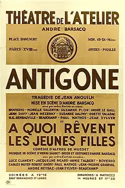 - ↑ Texte de programme du Théâtre de l'Atelier, 1974.