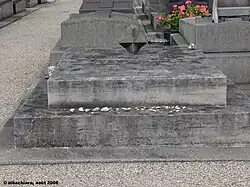 Sur sa tombe, décorée simplement d'un octaèdre étoilé, au cimetière des Batignolles (31e division), à Paris (17e), est gravée l’épitaphe : « Je cherche l’or du temps. »[68]