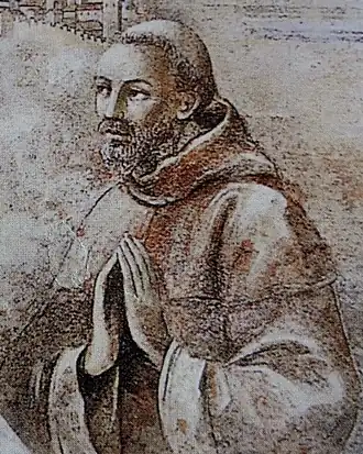 Issu d'une famille noble, il se destine à la prêtrise. Ordonné prêtre autour de 1217, il est curé de l'église de San Severino à Spello lorsqu'il rencontre en 1119 François d'Assise. Marqué par cette rencontre il décide de changer de vie et rejoint en 1223 l'Ordre franciscain alors naissant. Il est le premier prêtre à rejoindre l'Ordre. Il reçoit l'habit franciscain des mains même de François. Faisant partie des proches du saint il est présent à ses côtés lors du décès de celui-ci le [1],[2],[3],[4].
