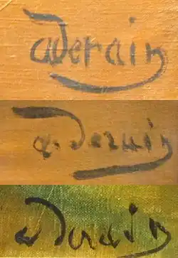 Jeunes peintres démunis avec Vlaminck, ils partagent un atelier dans la Maison Levanneur à Chatou. Il effectue son service militaire entre 1901 et 1904. Il commence à peindre ses premiers paysages et illustre les premiers romans de Vlaminck dont D'un lit dans l'autre[4]. Il rencontre le poète et critique Guillaume Apollinaire qui dédicacera un poème dans son recueil Alcools[6]. Autodidacte, il fréquente assidûment les musées et nourrit sa réflexion esthétique d'un grand nombre de lectures (Zola, Nietzsche…). À l'influence déterminante de Vincent van Gogh, qu'il découvre en 1901, s'ajoute celle des néo-impressionnistes et surtout l'œuvre de Paul Cézanne qu'il voit au premier Salon d'automne en 1903.