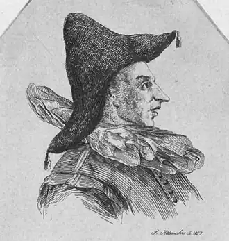 André Hubert, gravure de Frédéric Hillemacher dans Galerie historique des portraits des comédiens de la troupe de Molière, 1858.