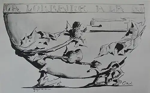 - ↑ Historique de la manifestation franco-russe organisée par le comité lorrain à l'occasion de la visite de l'escadre russe en France (octobre 1893), Nancy, Crépin-Leblond, 1894 ; l'ouvrage contient la reproduction du projet dessiné par Camille Martin et la photographie du bol réalisé par André Kauffer pour le vaisseau « Amiral Nakhimoff ». Voir aussi Muriel Barbier et Wilfried Zeisler, "La Belle Époque de l'Alliance franco-russe en Lorraine", Le Pays lorrain, t. 91, 2010, p. 291-306.