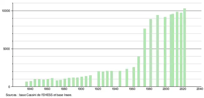 - ↑ Fiches Insee - Populations de référence de la commune pour les années 2006, 2007, 2008, 2009, 2010, 2011, 2012, 2013, 2014, 2015, 2016, 2017, 2018, 2019, 2020, 2021 et 2022.