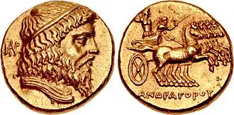 - ↑ La seule autre mention du nom Andragoras se trouve dans des papyrus grecs de l'Égypte ptolémaïque.