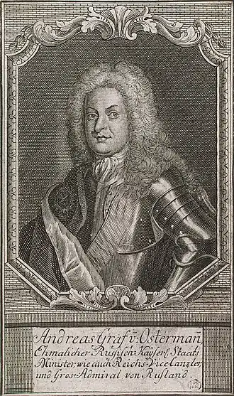 Andreï Ivanovitch Ostermann servit sous les règnes de Pierre le Grand, de Catherine Ire, Pierre II et Anne Ire. Sa politique étrangère fut basée sur une alliance avec l'Autriche. Il excella dans la diplomatie.