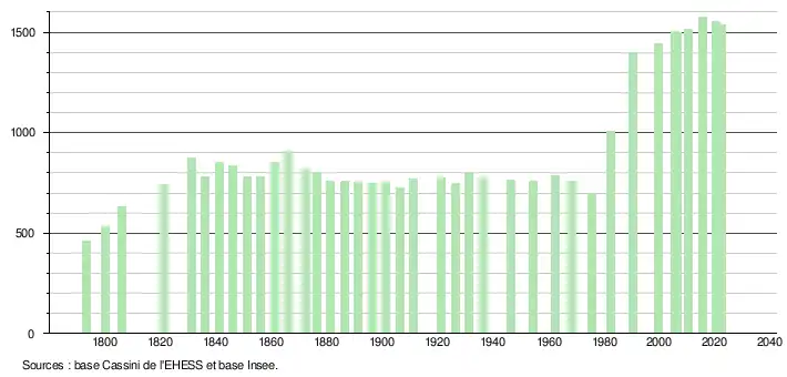 - ↑ Fiches Insee - Populations de référence de la commune pour les années 2006, 2007, 2008, 2009, 2010, 2011, 2012, 2013, 2014, 2015, 2016, 2017, 2018, 2019, 2020, 2021 et 2022.
