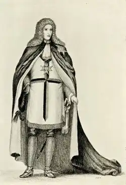 - ↑ Il meurt en 1715, à la bataille de Sheriffmuir.[A 6]