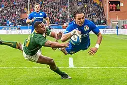- ↑ « Tournoi des Six Nations : Ange Capuozzo, le Franco-italien qui a passé deux essais en 13 minutes à l’Ecosse », sur Le Parisien, (consulté le ).