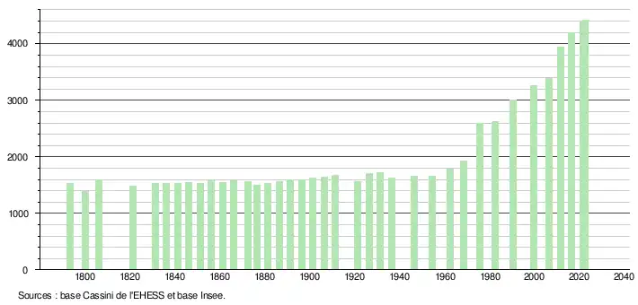 - ↑ Fiches Insee - Populations de référence de la commune pour les années 2006, 2007, 2008, 2009, 2010, 2011, 2012, 2013, 2014, 2015, 2016, 2017, 2018, 2019, 2020, 2021 et 2022.