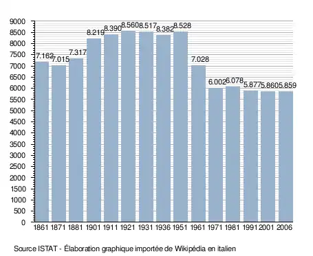 - ↑ (it) Popolazione residente e bilancio demografico sur le site de l'ISTAT.