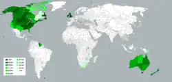 Langue officielle de facto du Royaume-Uni, de l'Irlande et d'autres îles de l'archipel britannique (Île de Man, îles anglo-normandes), l'anglais est la langue maternelle de tout ou partie de la population, et suivant les cas, la langue ou une des langues officielles de plusieurs pays, totalement ou partiellement issus des anciennes colonies britanniques de peuplement, dont les États-Unis, le Canada, l'Australie et la Nouvelle-Zélande, que l'on réunit sous l'appellation de « monde anglo-saxon », bien qu'il n'existe pas de définition universelle de cette expression.