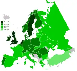 - ↑ (en) « Index of knowledge of English in Europe by country » [« Index de la connaissance de l'anglais en Europe par pays »], sur jakubmarian.com.