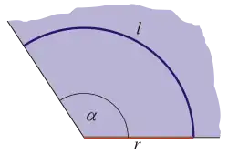 L'unité internationale de mesure des angles est cependant le radian, défini comme le rapport entre la longueur de l'arc intercepté et le rayon du cercle. Le tour complet correspond donc à radians.