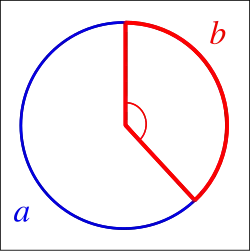 L'angle d'or, sous-tendu par l'arc de cercle b, mesure en radians :