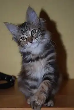 Les oreilles sont grandes et larges à la base. Elles se finissent légèrement en pointe et sont idéalement pourvues d'un plumet de lynx, élément caractéristique de la race. Les oreilles sont placées haut sur la tête et de manière verticale.
