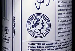 Image de L'empereur François-Joseph Ier d'Autriche sur l'étiquette : Angostura a remporté une médaille à l'Exposition universelle de 1873 à Vienne.